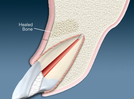 Healing in its initial stages takes around 2 weeks, and then if the procedure is deemed successful, in 6 months bone regeneration has started to occur.